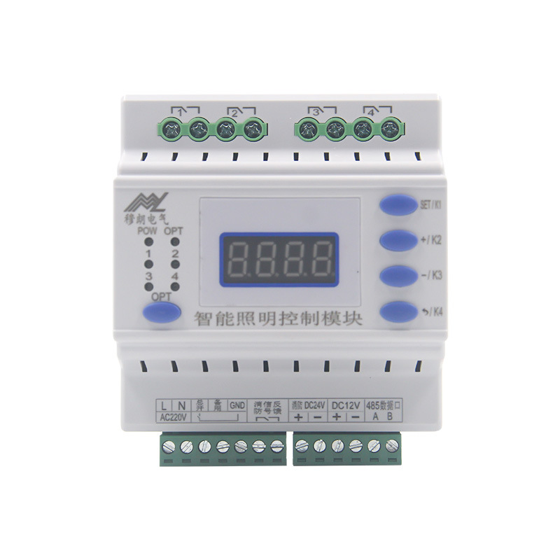 The MLM-04/16AC features advanced communication capabilities, employing an RS485 communication interface and adhering to the standard Modbus-RTU communication protocol. This ensures seamless integration with existing systems and supports both remote centralized control and local control options. The module is equipped with a digital display for easy monitoring and configuration; users can set the communication address, baud rate, and restore factory settings with just a few clicks. Furthermore, the module supports emergency manual control and fire alarm signal feedback, providing safety assurance in emergency situations. The MLM-04/16AC features fire linkage, forced start and cut-off settings, and customizable full on/off delay options, designed to meet the diverse needs of modern lighting control.