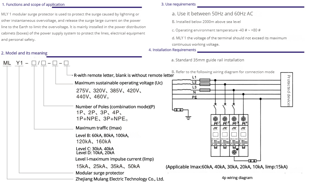 The MLY1-100 is easy to install and use, requiring no adjustments after installation. Once properly installed, it automatically activates and protects your grid without any additional intervention. Regular maintenance is recommended to ensure optimal performance; users should regularly inspect the module for any signs of faults. A fault indicator provides a clear visual indication, changing from green to red when a component requires replacement. Promptly resolving issues maintains the integrity of the power distribution system and ensures continued protection of your valuable power assets. With the MLY1-100 surge protector, you can rest assured that your system is protected from unpredictable natural disasters.