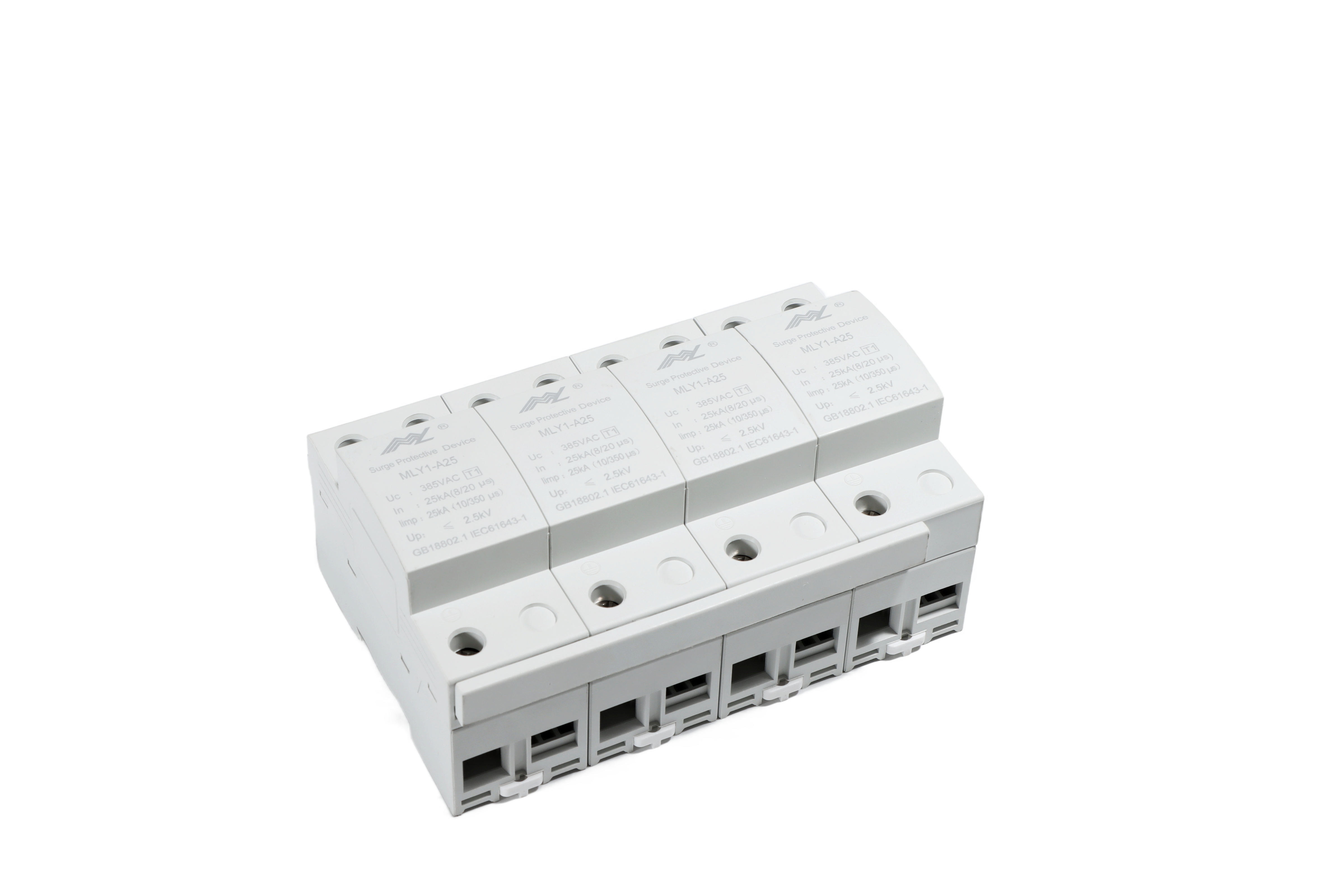 The MLY1-A25-50B is designed to meet and exceed the stringent requirements of current national standards, including GB50057-2010 and GB 18802.1. This single-port indoor fixed voltage switching surge protector (SPD) boasts superior technical specifications, including a surge current rating of up to 30kA and a low residual voltage of only 2.5kV. At the heart of this advanced surge protector is a multi-stage graphite gap, ensuring optimal performance during surge events. The MLY1-A25-50B’s meticulous design and precision machining create a sealed structure that effectively prevents arc leakage even under the most demanding conditions. This means you can trust that your electrical system is always protected, ensuring uninterrupted operation.